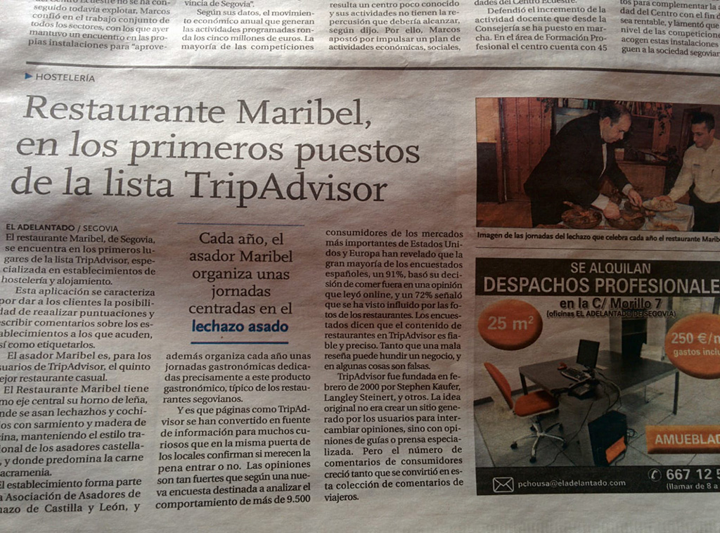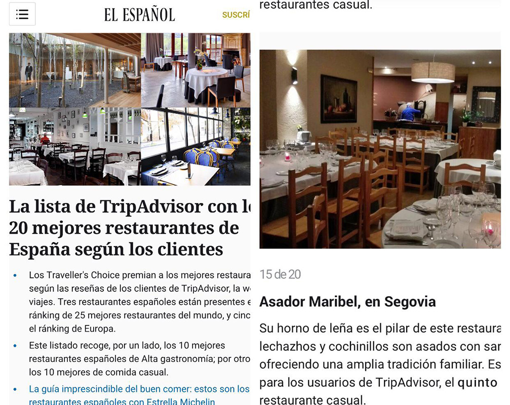 Nuestro día a día en imágenes Nuestra cocina se basa en el respeto al producto autóctono, la pasión por el buen hacer y el mimo a cada uno de nuestros clientes. Comedores Horno de asar Platos Postres Terraza Reconocimientos y premios En los medios